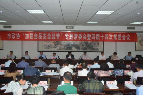 5月26日,市政协召开“加强食品安全监管”专题常委会暨四届十四次常委会议,会议听取并审议了市政协专题调研组《关于加强食品安全监管的调研报告》;书面审议了市政协专题考察组有关考察报告;审议通过了市政协《关于加强食品安全监管的建议案》、《关于加强委员履职与服务管理的暂行办法》;协商通过了有关人事任免事项。市领导孙云飞、王胜、束学龙、章立奇、刘德新、司敏、聂保国、孙学龙、黄应松出席会议。